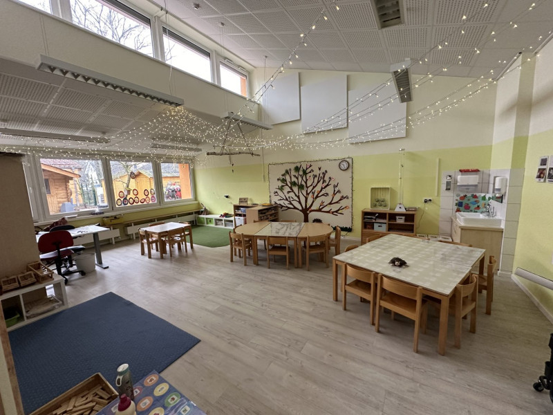 Unsere große Einrichtung mit 9 Gruppen hat insgesamt 40 Mitarbeiterinnen und Mitarbeiter. Diese bestehen aus: 28 pädagogischen Fachkräften, 3 Vertretungskräften, 4 Auszubildenden, 1 Köchin, 3 Hauswirtschaftskräften, 1 Hausmeister und unserem Kita-Hund Finou, der an zwei Tagen in der Woche eine Gruppe besucht.